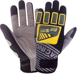 Motocross Glove Made of Palm: Grey amara + reinforced black amara. Back : Black foreway (nylon cloth) with neoprene + PVC patches + neoprene wrist cuff & velcro closing strap.