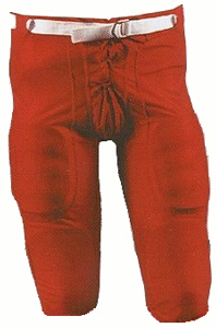 Foot Ball Pants 100% Poly warp knit. 3 piece back. 2 1/2 " tunnel waist (adult). 2" tunnel waist (youth)