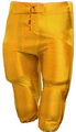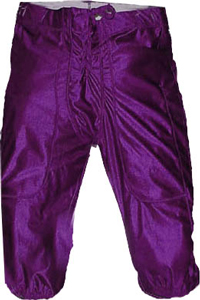 Foot Ball Pants Luster nylon spandex. Waistband: slotted 3 piece back construction. 2 1/2 inch elastic waistband. Double knit thigh & knee pockets. Half belt & pad snaps - youth sizes